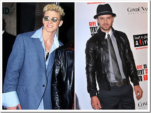 Justin é o classico exemplo de mudança pós “real” fama. Das roupas anos 90 de ser e cabelo miojo do NSinc para um look ao menos mais apresentavel e menos Ace Ventura. PS. Daria um bom vocalista para um grupo de pagóde.